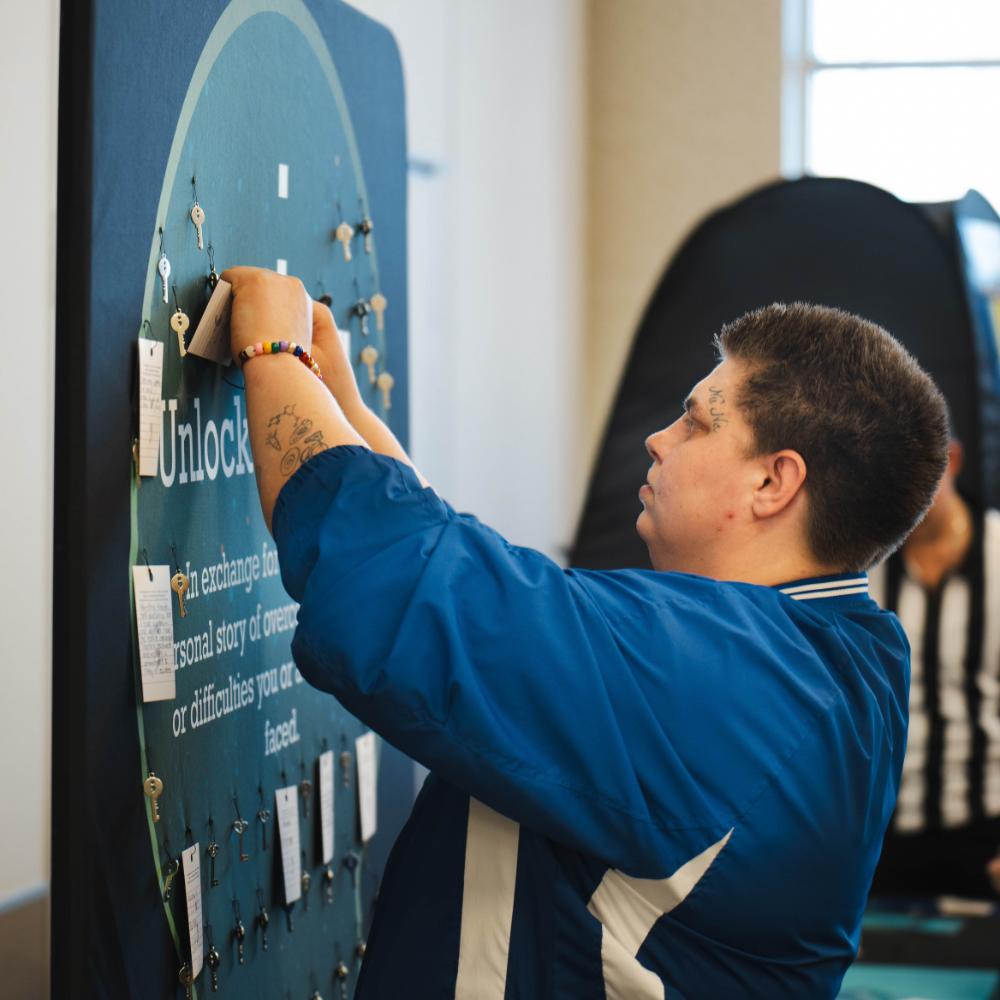 The Unlock Your Story Station is a transformative activity that invites individuals to share their personal stories of overcoming challenges. In exchange for their story, participants receive a key with a semicolon symbol, which they can turn into a keychain. This symbolic gesture not only serves as a reminder of their resilience, but also helps raise awareness for mental health stigmas. Through this activity, students learn the profound impact of vulnerability, empathy, and connection. By sharing stories, participants discover that they are not alone, and that their experiences have the power to inspire and support others. This activity underscores the importance of seeking help, offering support, and breaking the silence surrounding mental health issues. It empowers students to create a supportive community where everyone feels seen, heard, and valued.