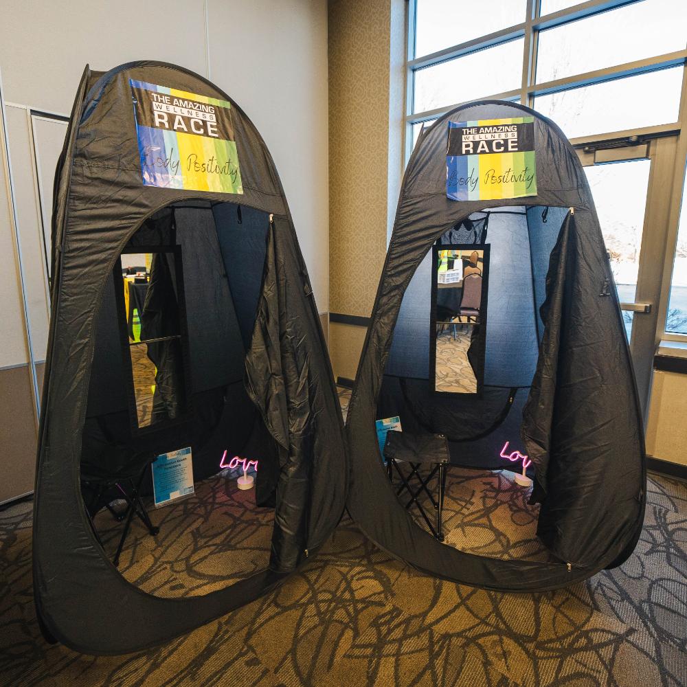 During the Body Positivity Station, participants experience the importance of self-love, acceptance, and appreciation through practicing positive affirmations. By practicing positive affirmations and meditation, participants are more likely to cultivate a mindset of body positivity and appreciation, with a goal of creating a healthier relationship with self. After completing the activity, participants are welcome to write their most powerful affirmations on a pocket mirror. Taking the mirror with them serves as a tangible reminder to embrace their unique self and foster confidence in their own skin. Don’t forget the importance of celebrating your body, you only get one of them!